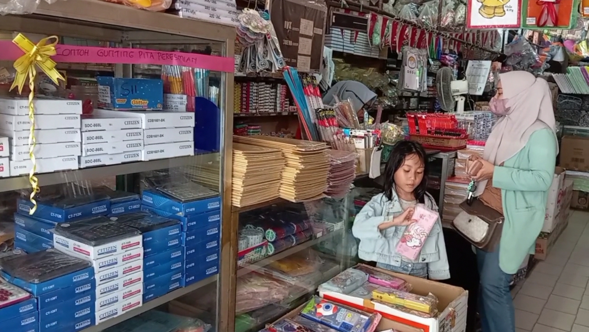 “Walaupun ada online, alhamdulilah disini masih ada aja yang beli perlengkapan sekolah, dan tambah setiap tahunnya,” tambahnya.