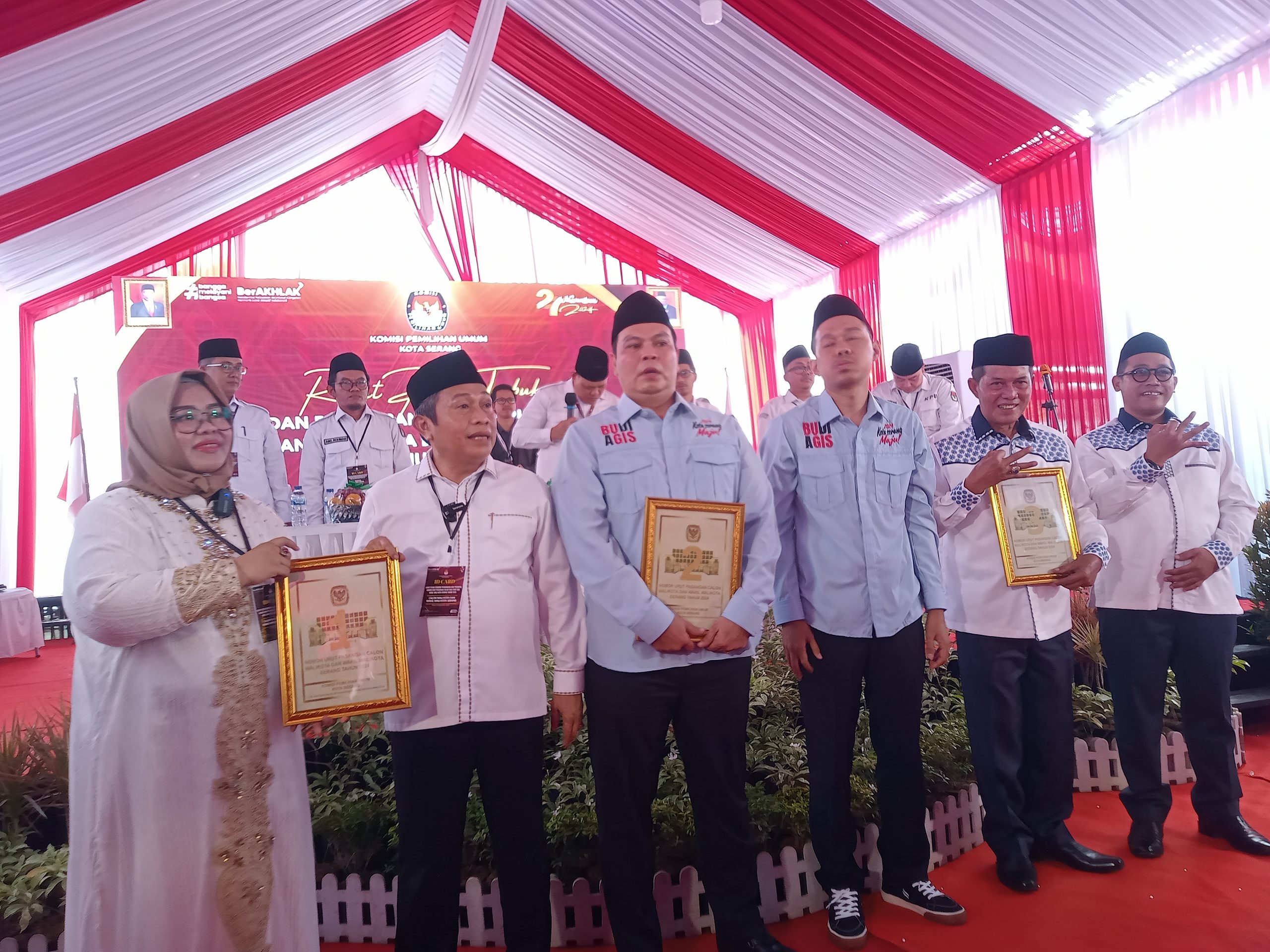 Serang,- Komisi Pemilihan Umum (KPU) Kota Serang melakukan pengundian nomor urut pasangan calon (paslon) untuk Pemilihan Kepala Daerah (Pilkada) Kota Serang 2024.