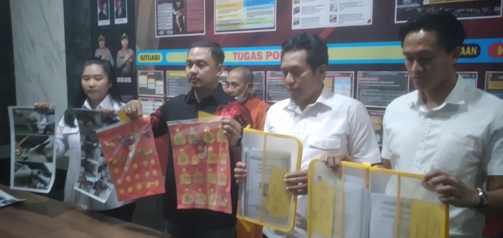 Dari dua tersanga polisi berhasi mengamankan barang bukti berupa 19 bundel dokumen pengadaan sapi,40 buah anting sapi.