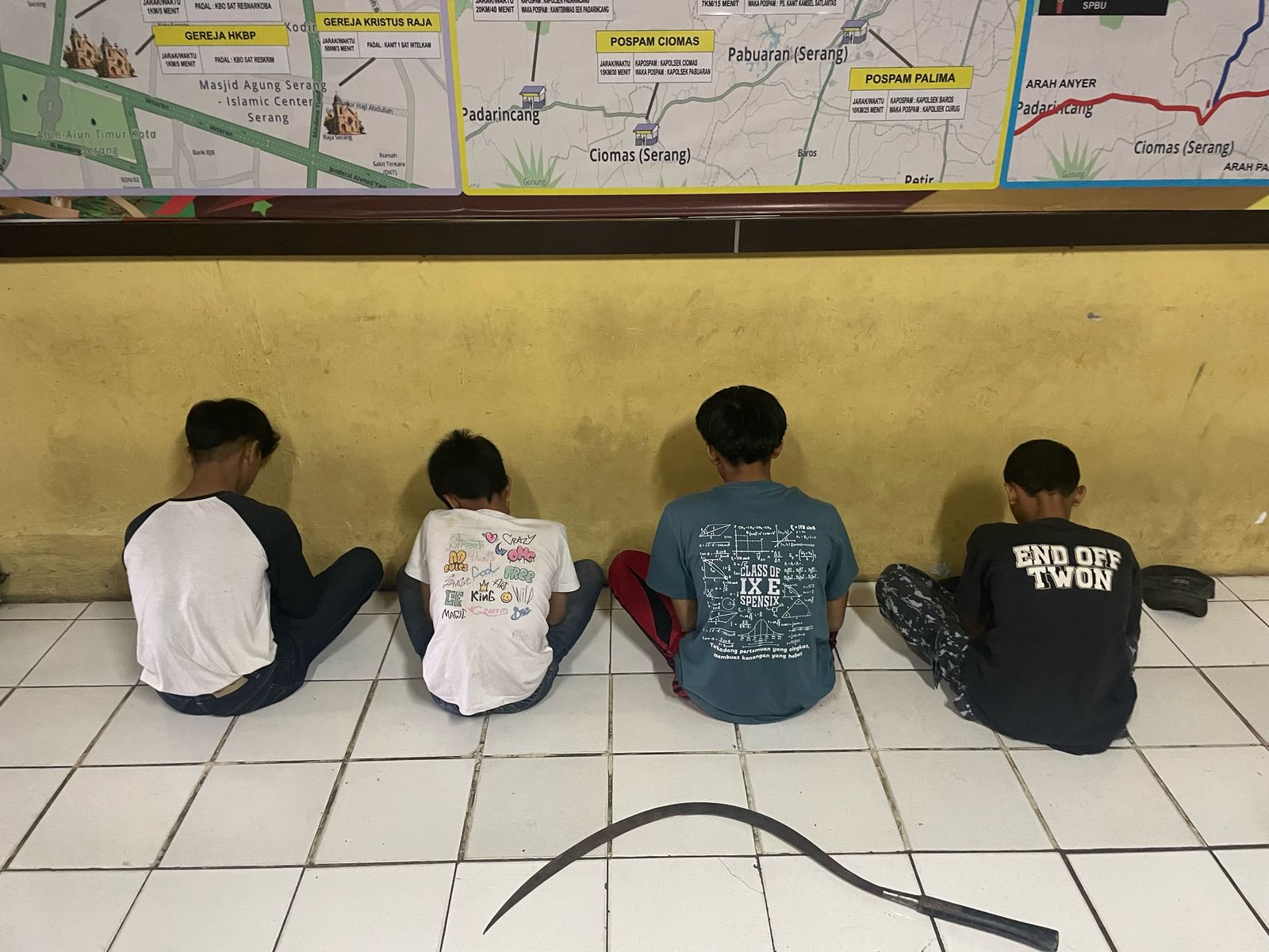 Berawal tim satgas kesatria hebat presisi Polresta Serang kota patroli, yang mana melihat gerombolan anak muda dengan mengacungkan senjata tajam dipingir jalan, tim langsung bergegas mengamankan aksi tersebut dan berhasil mengamankan empat pelaku tawuran serta barang bukti satu celurit besar.
