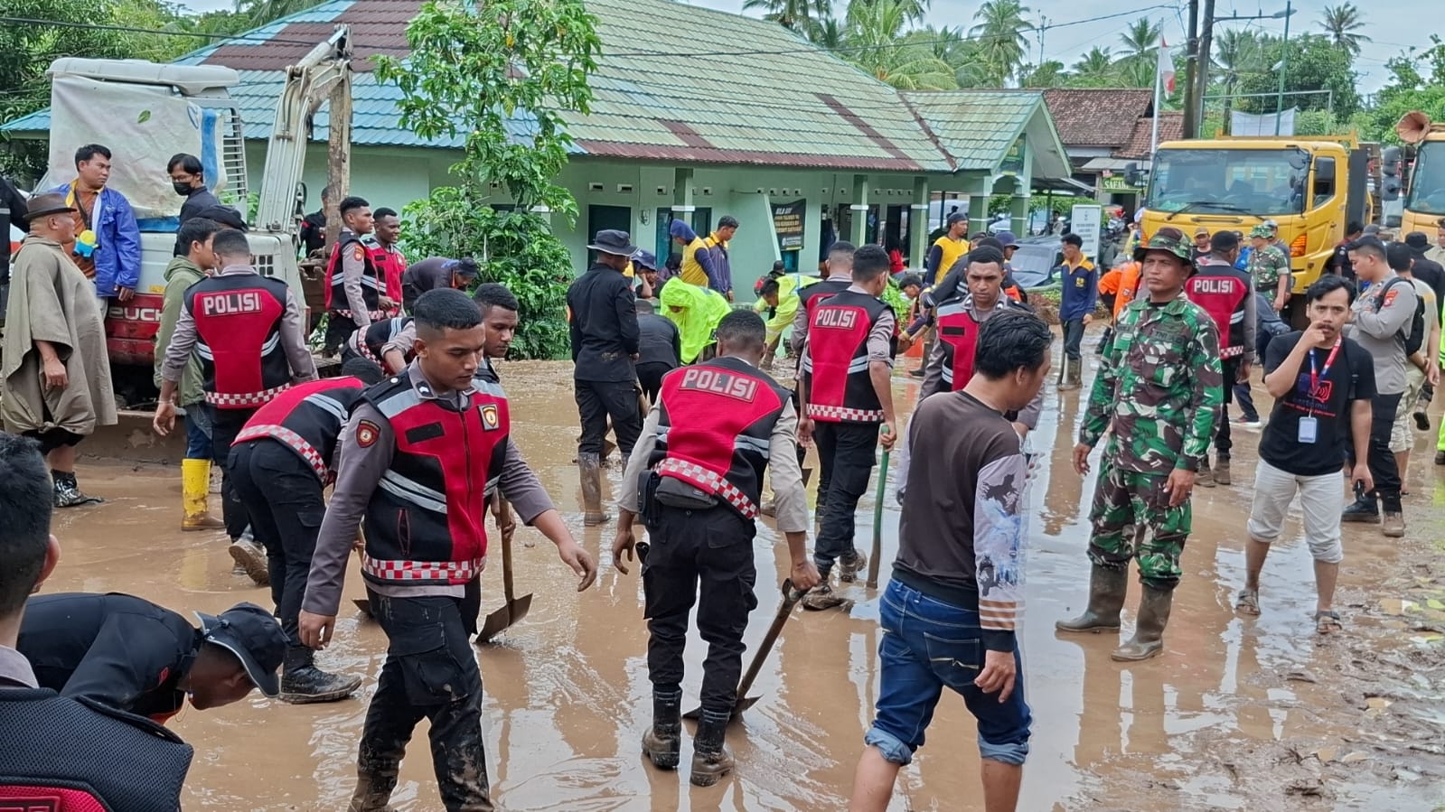 “Polri bersama TNI dan BPBD melaksanakan pembersihan tanah dan lumpur yang menutup akses jalan, memberikan bantuan kesehatan kepada warga yang terdampak, melaksanakan kegiatan,” kata Didik.