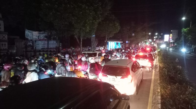 Kendaraan yang di dominasi oleh kendaraan roda dua itu memadati jalan protokol sejak pukul 19.00 wib. Pengendara sepeda motor terlihat membawa barang-barang yang cukup banyak.