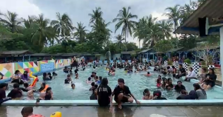 Menjelang Liburan Usai, Pelajar Padati Wisata Taman Air Di Kota Serang