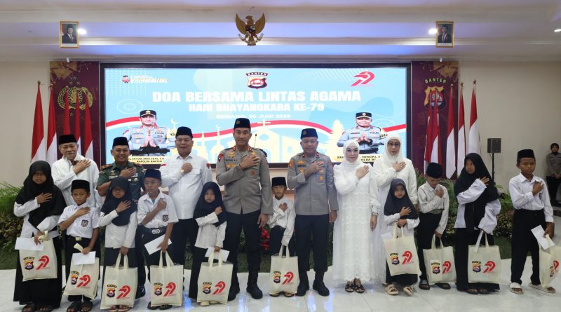 Serang, notifbanten.com – Polda Banten menggelar kegiatan Do’a Bersama Lintas Agama dan pemberian santunan kepada anak yatim dalam menyambut Hari Bhayangkara ke-79 yang tahun ini mengusung tema “Polri untuk Masyarakat”. Bertempat di Aula Serbaguna Polda Banten, kepada notifbanten.com Senin (30/06).