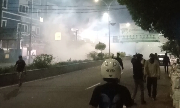 Peristiwa ini terjadi sekitar pukul 19.30 WIB. Saksi mata melaporkan, asap gas air mata membubung tinggi di sekitar lokasi, menyebabkan sejumlah mahasiswa dan warga sekitar terpaksa menyelamatkan diri. Meski demikian, beberapa demonstran tetap bertahan sambil meneriakkan yel-yel perlawanan terhadap aparat.