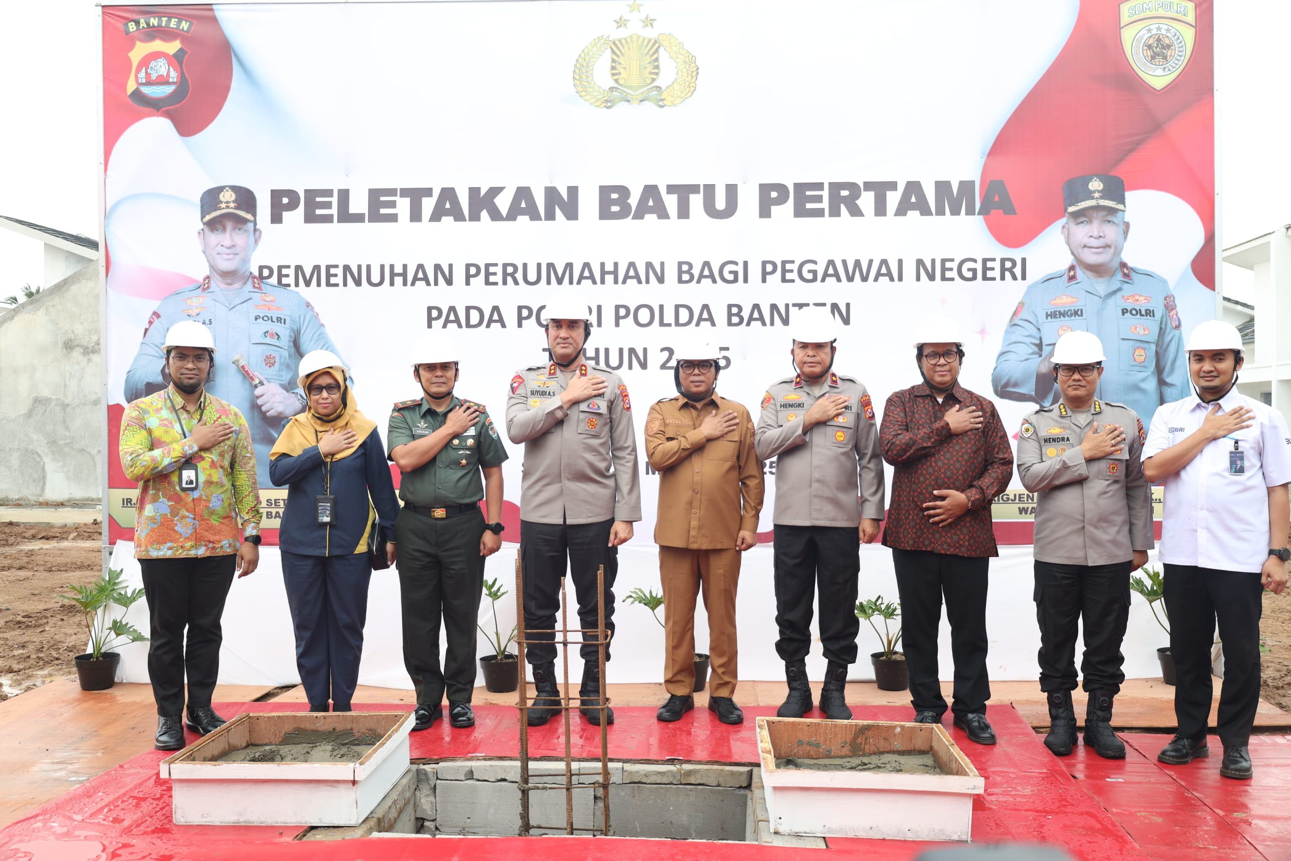 Serang,- Polda Banten menggelar peletakan batu pertama pemenuhan perumahan bagi pegawai negeri pada Polri tahun 2025 yang bertempat Perumahan Banjarsari