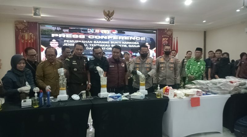 Read MoreSerang, notifbanten.com – Ditresnarkoba Polda Banten menggelar press Conference pemusnahan barang bukti Narkoba jenis sabu, tembakau sintetis, ganja dan obat-obatan.