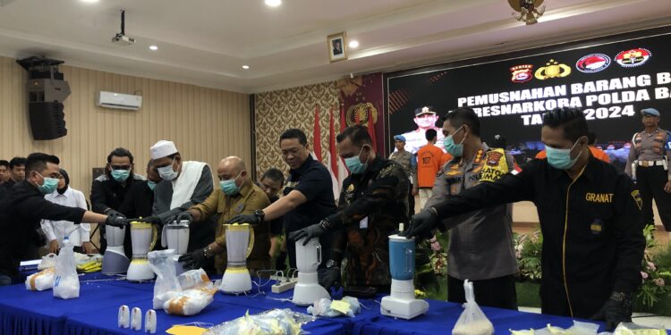 Serang,- Direktorat Reserse Narkoba (Diresnarkoba) Polda Banten menggelar acara pemusnahan barang bukti narkoba hasil pengungkapan kasus sepanjang tahun 2024. Barang