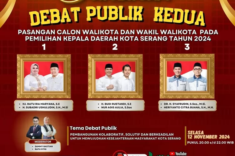 Ayo Saksikan! Debat Kedua Calon Walikota dan Wakil Walikota Serang Dalam Pilkada 2024